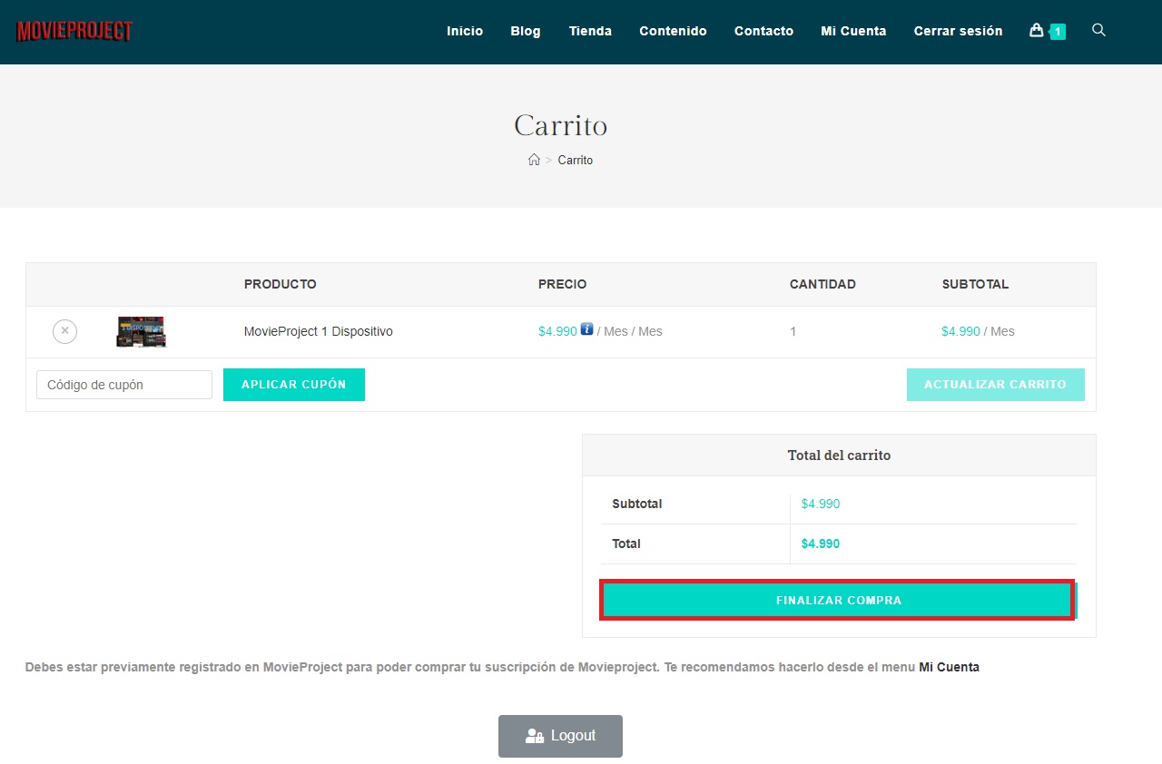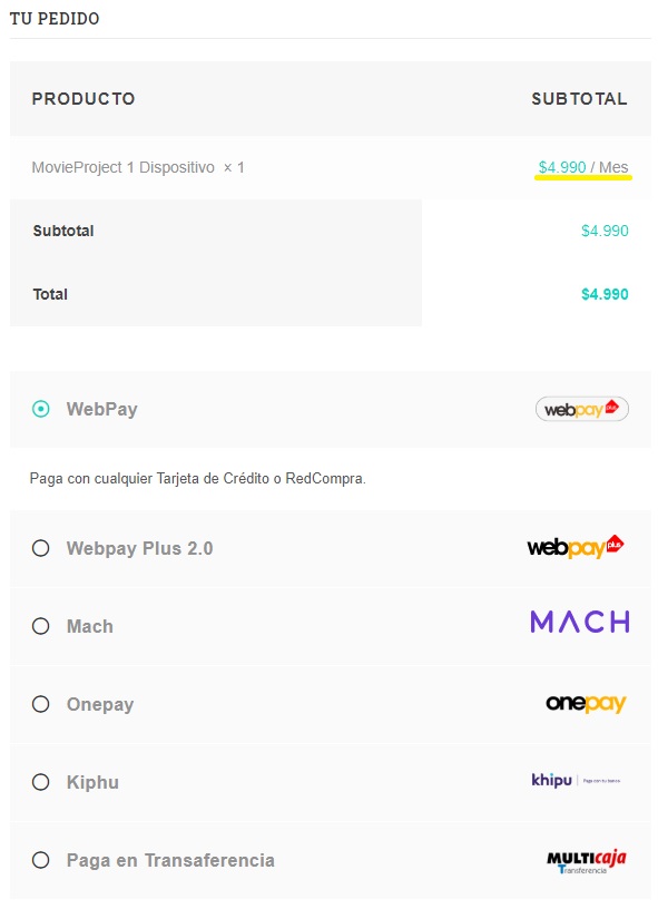 Observa los pasos, es muy sencillo adquirir tu suscripción a MovieProject